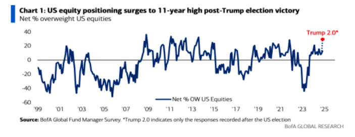 投资者近来显然也注意到了这一信息。美国大选后的散户购买量是近三年来最强劲的,而外国投资者对美国上市ETF的购买量也创下了新高。这些投资者可能指望特朗普1.0时代的重演——减税和放松管制将推动强劲的经济增长和繁荣的股市。